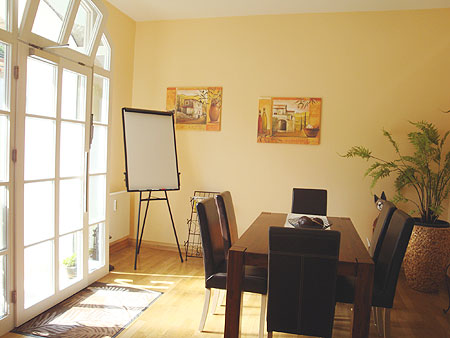 regio-experts verfügt über drei eigene Schulungs-, Seminar- bzw. Besprechungsräume für Gruppen bis 12 Teilnehmer mit modernster EDV-Ausstattung (Laptops mit allen MS-Office-Anwendungen), Internetzugang, Beamer, LED-TV, Scanner, Kopierer, Overhead, Flipchart, Moderationswand und -koffer sowie zusätzlichen Räumlichkeiten für Arbeitsgruppen als auch über einen Sozialraum.